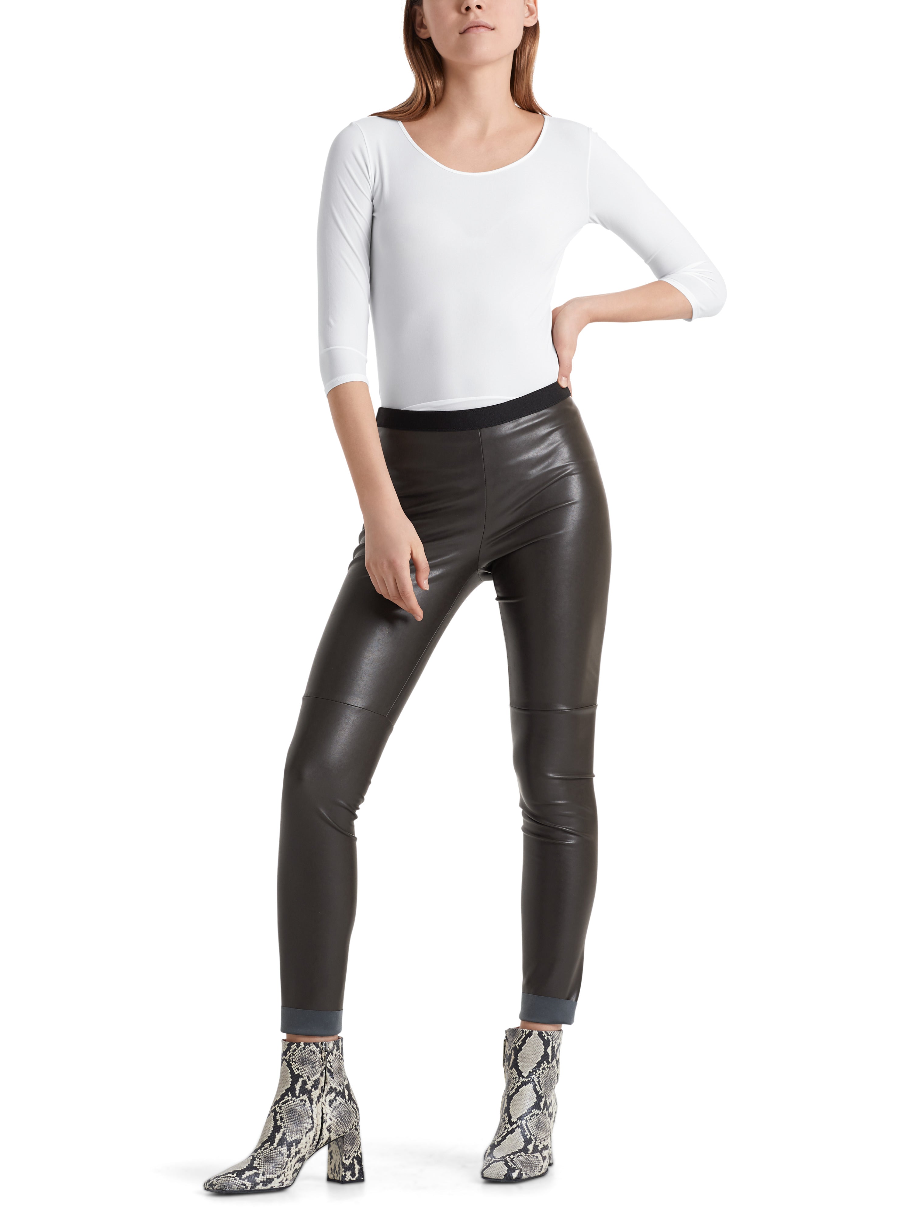 Hauchzartes Longsleeve|Hochwertiges Longsleeve von Marc Cain aus feinstem Stretch-Material mit ultraweicher Haptik und dezenter Taillierung. Das schöne Essential wird von dem weiten Rundhals-Ausschnitt und doppelten Steppungen an den Ärmelabschlüssen und Saum vollendet.|Farbe: white|Elastischer Material-Mix|Eingefasster und abgesteppter Rundhals-Ausschnitt|Das Model ist 179 cm groß und trägt N3/38.|Schimmernder Logo-Print inwendig an der Nackenpartie